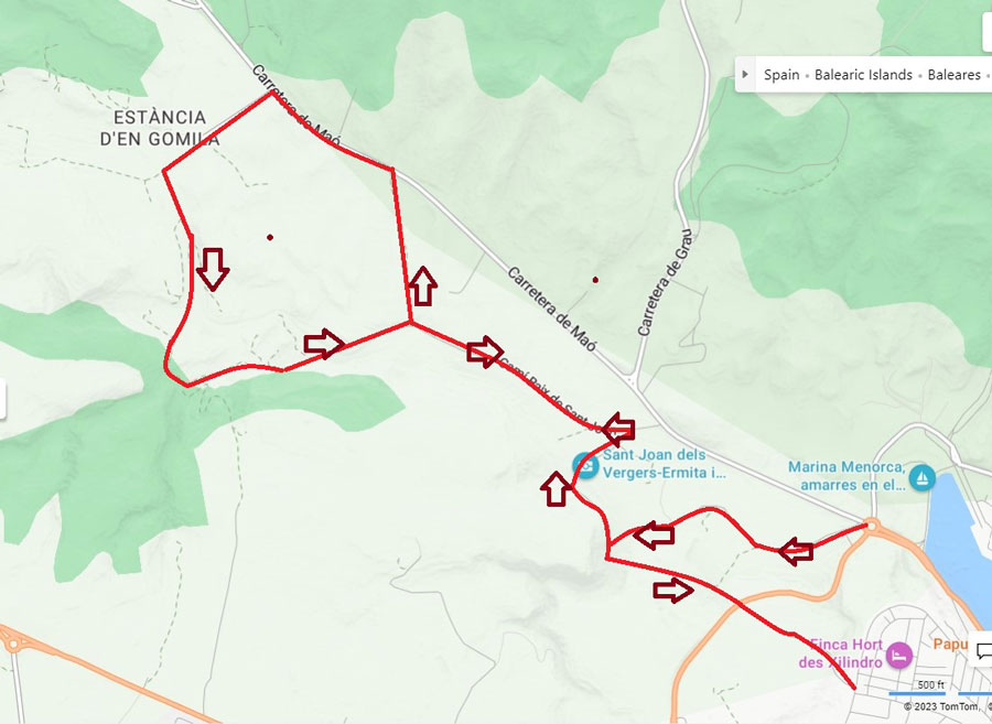 Many of Menorca’s walks are well documented in several books and of course the 180km Cami de Cavalls coastal path which circumnavigates the whole island is the most famous of them all. But for us, living in Mahon, we were keen to find a varied and unspoilt morning or evening walk we could do from our front door, without getting in the car; one we could do time and time again and never get bored. The coastal path along the estuary to Es Castell is lovely but a little short. We have, however discovered a real gem of a walk, one that keeps you away from traffic the moment you leave the port, cuts through beautiful countryside, past a pretty, little-visited Chapel with a rich history, along a gorge – and back home in just six miles. We call it “the figure of 8” and for those living in Mahon, it’s an absolute treat.